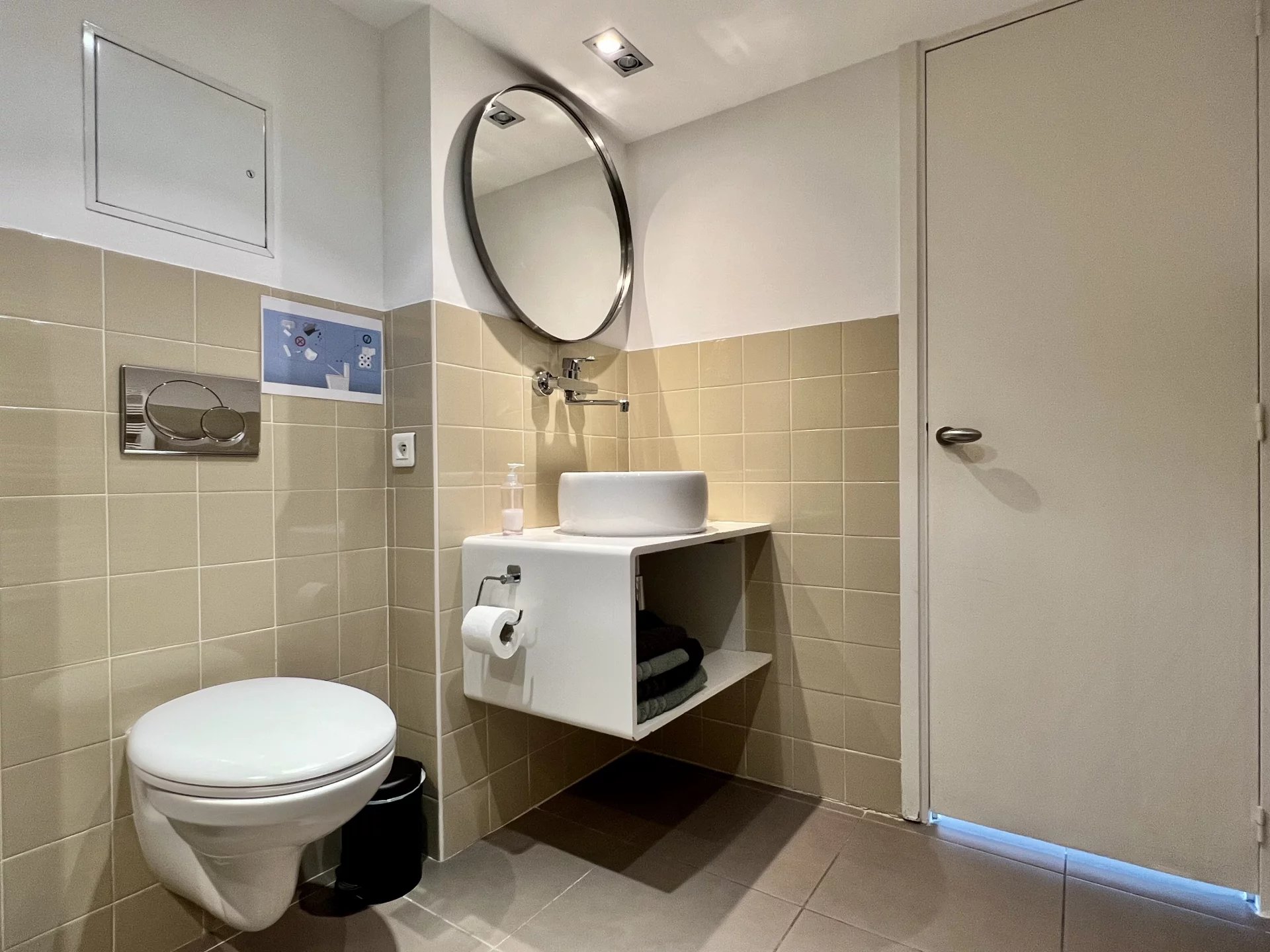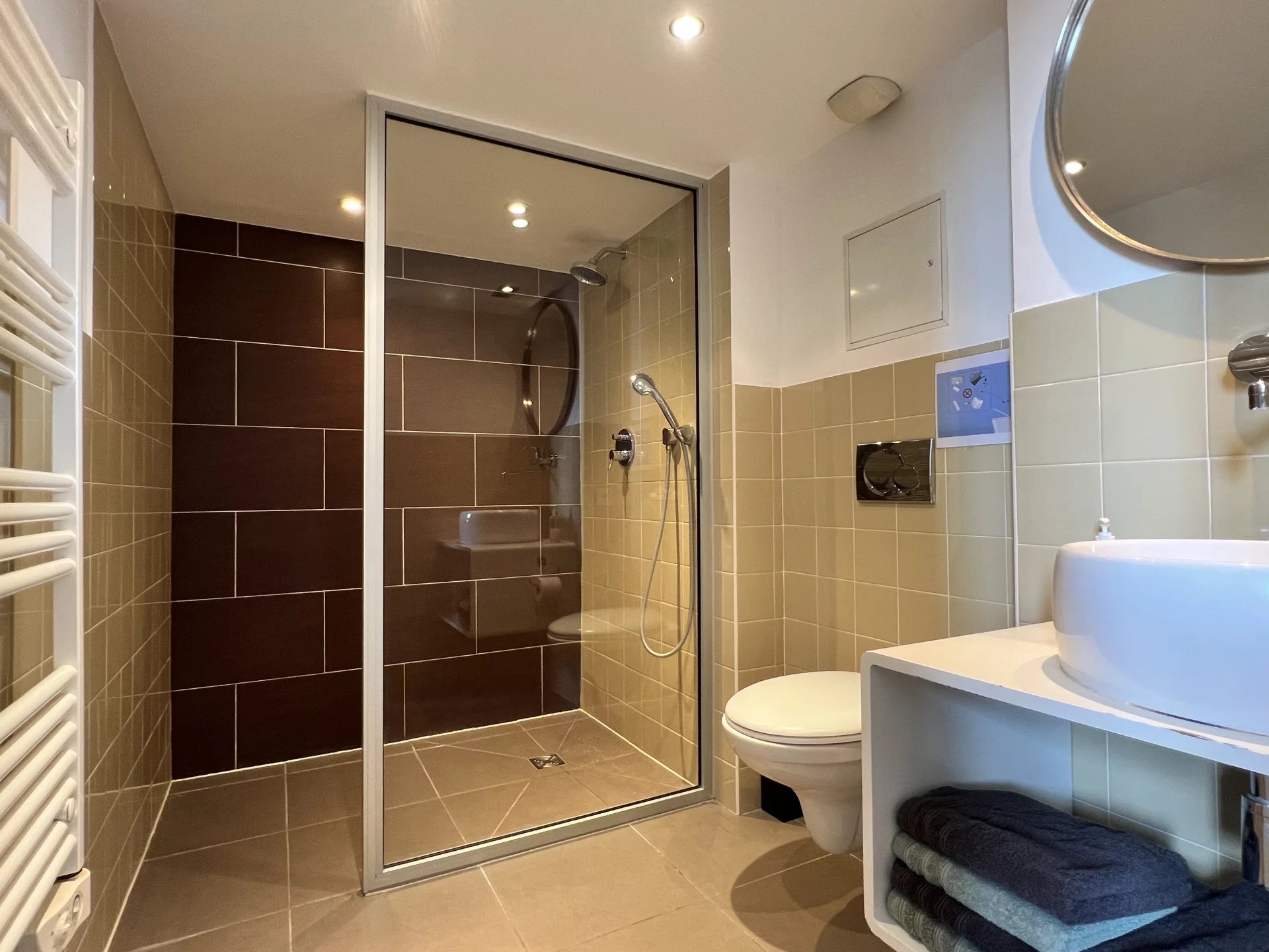 L’appartement se compose d’un vaste séjour lumineux avec cuisine ouverte entièrement équipée, d’un coin salon avec canapé convertible optimisant le nombre de couchages, ainsi que d’une mezzanine accueillant un lit double. Une grande salle de douche avec WC complète l’espace.
