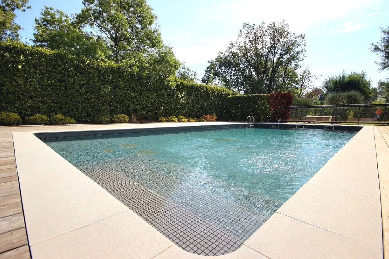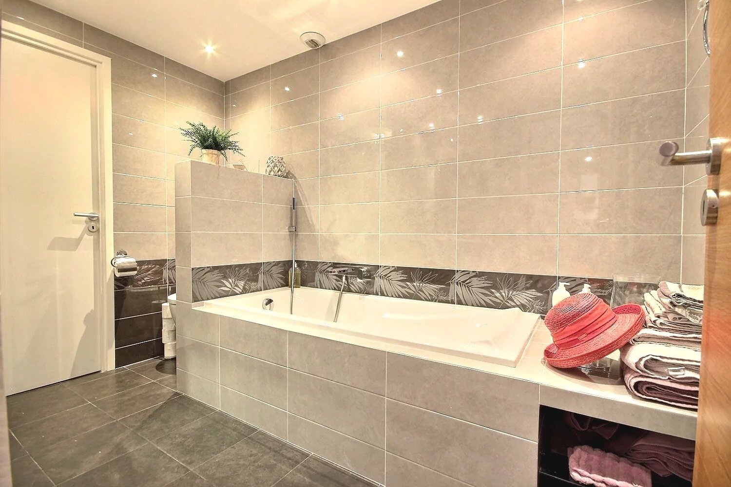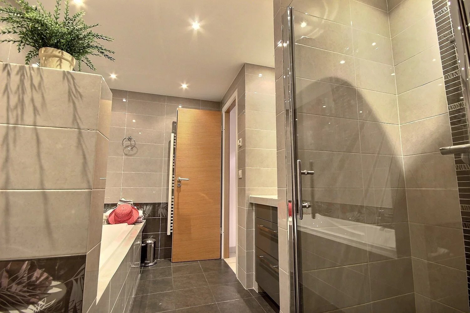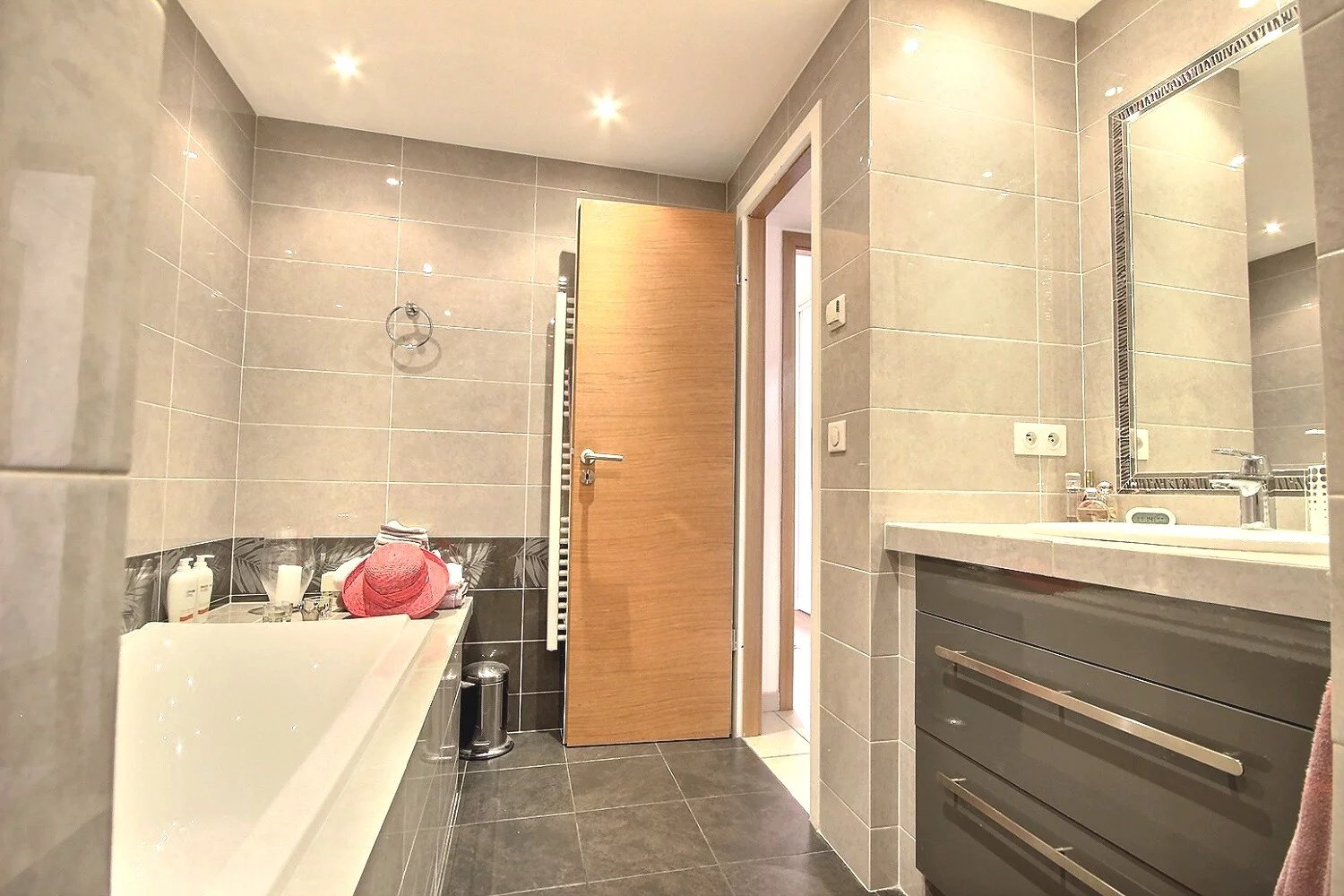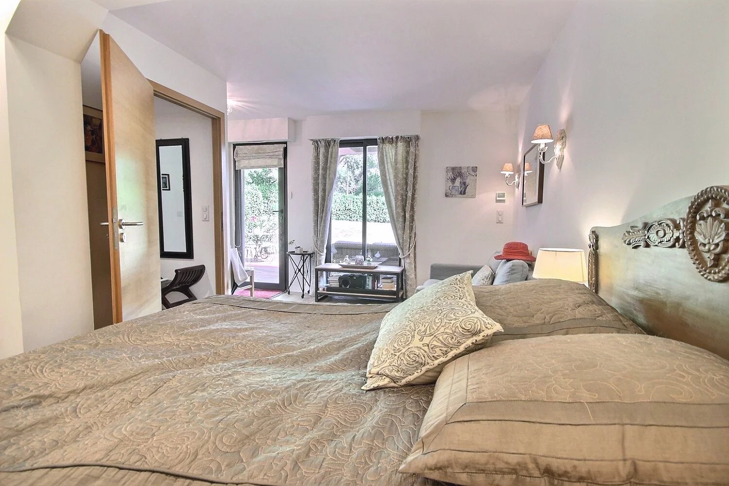 På trädgårdsnivå finns två sovrum, varav ett är en magnifik svit på 20 m² med direkt tillgång till trädgården och poolen.