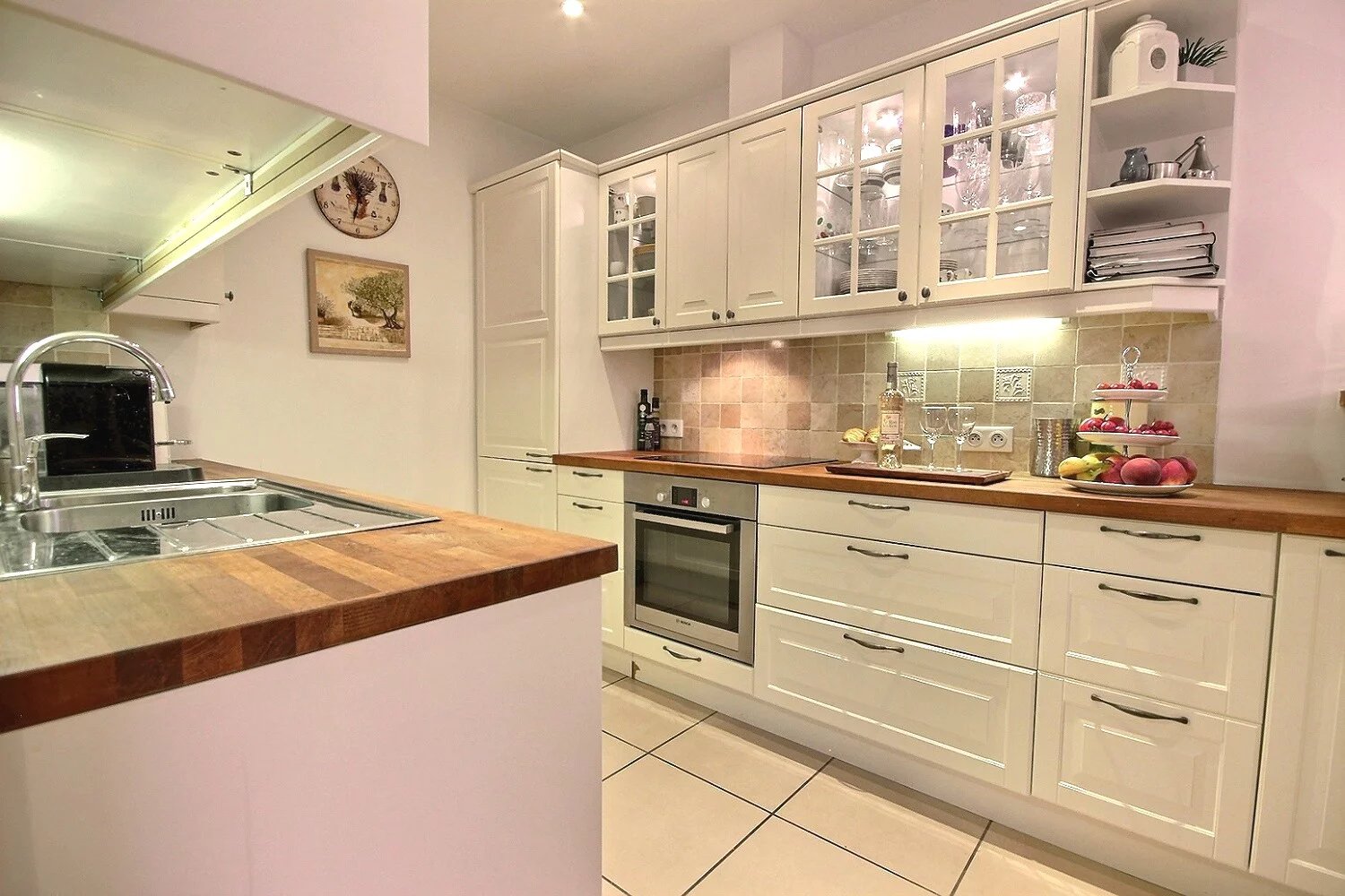 Det fullt utrustade köket, byggt med material av hög kvalitet, förenar stil och funktionalitet.