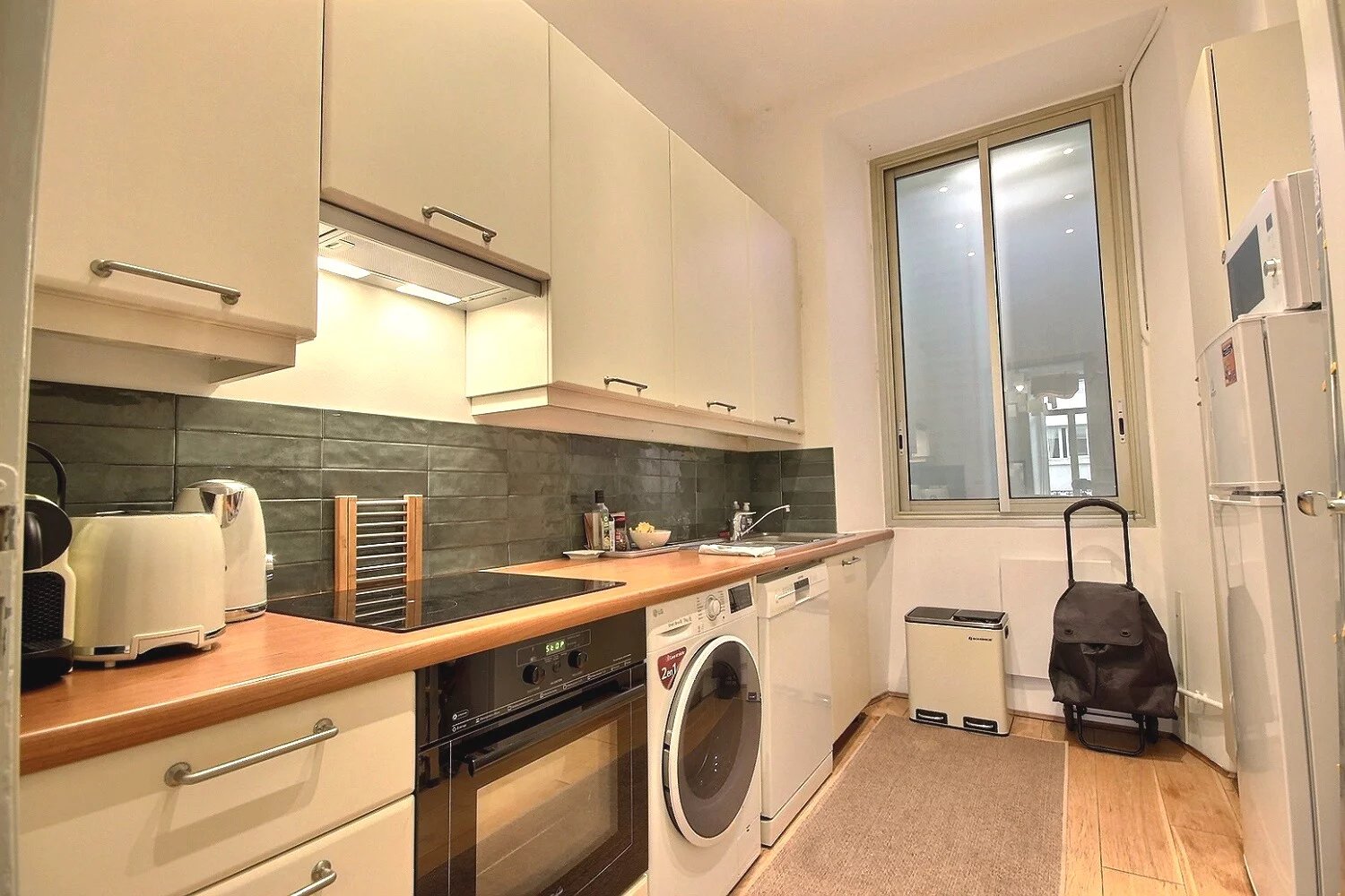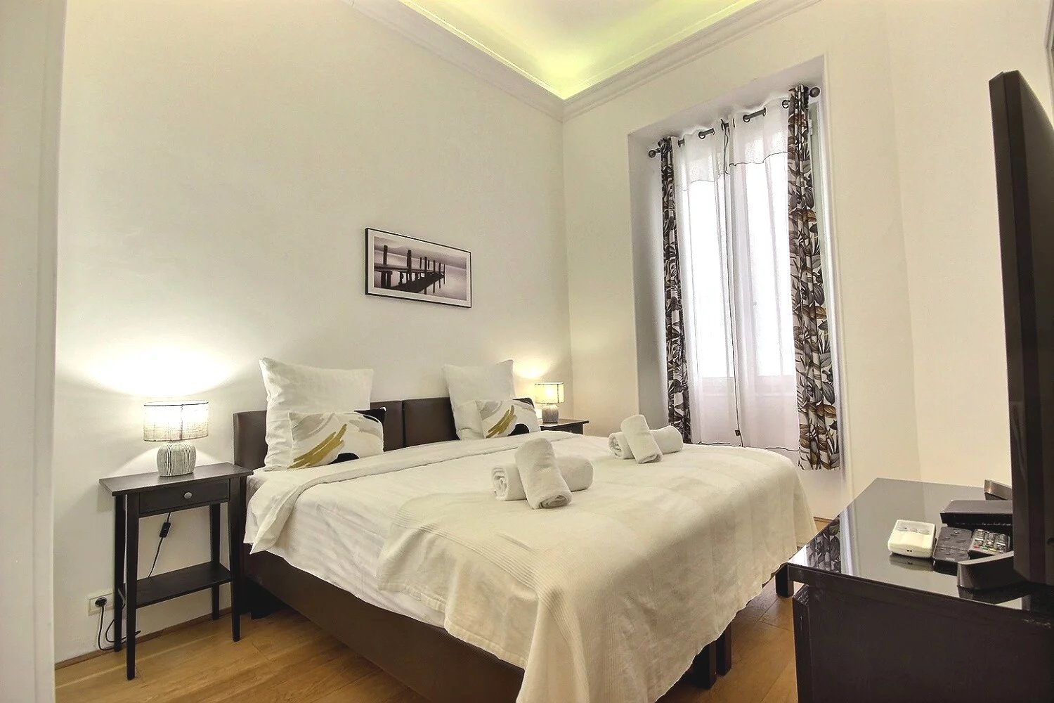 Smakfullt inredd erbjuder denna lägenhet en välkomnande atmosfär med vacker takhöjd som ger en luftig känsla till varje rum. Lägenheten består av en mysig lounge, en inbjudande matplats och ett fullt utrustat kök. Två välutrustade sovrum samt två badrum.